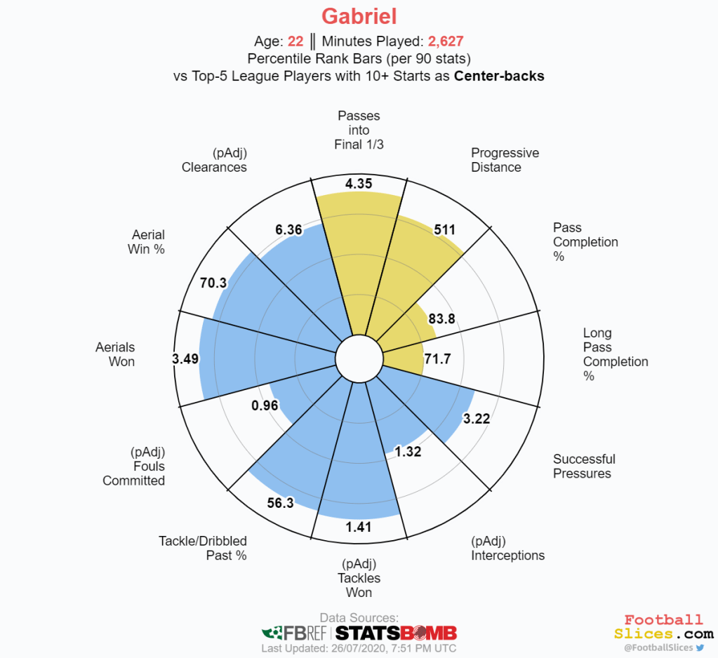 The Brazillian regularly attempts to cut through opposition lines with his passing which is further highlighted by his 4.35 passes into the final third. When Gabriel is in possession, he’s always looking to play it forward, always looking for the risk and reward pass, and that’s a trait Mikel Arteta will hold dear.