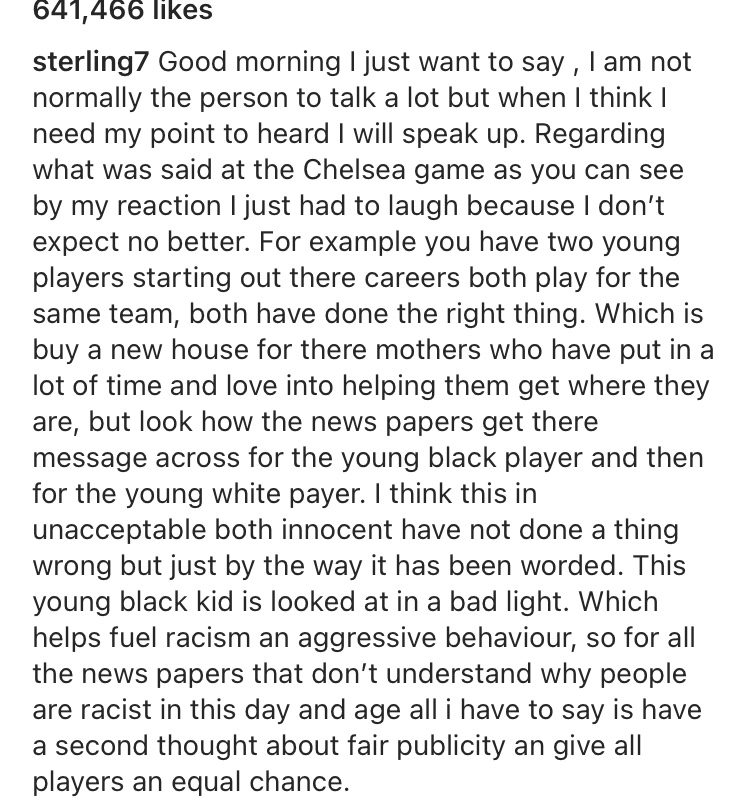 Here we have yet another Raheem Sterling incident like we had two years ago where the Manchester City forward was pictured in a negative light because of a “controversial” tattoo on his right leg. Sterling addressed it, stating that the British media intentionally set out to destroy young footballers by ‘fuelling racism and aggressive behaviour’, when comparing Daily Mail reports on Phil Foden and Tosin Adarabioyo who both bought houses for their parents which brought much attention and debate:
