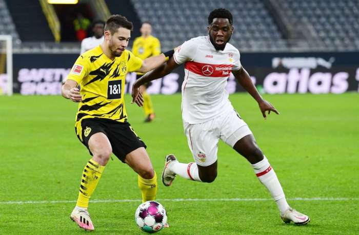 It was Mangala who did just that for the second goal, scored by another bright player in their squad and their top-scorer this campaign, Silas Wamangituka. Once Mangala knicked the ball off Raphael Guerreiro, he then drove into the penalty box, swiftly got by Guerreiro and then picked his moment to square it for Wamangituka for Stuttgart’s second goal of the game. It was a goal truly encompassing of the Belgian’s qualities in possession.