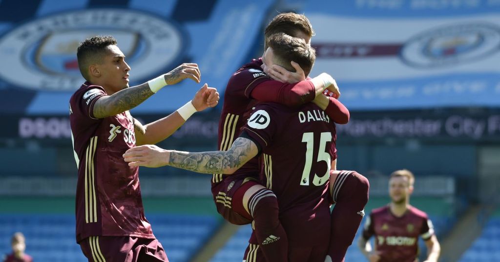 The midfielder opened the scoring in the 42nd minute after being set up by Patrick Bamford. Just minutes later, defender Steve Cooper saw red for a dangerous tackle on City forward Gabriel Jesus. In the second half, Leeds – a man down – managed to keep their opponents at bay until the last 15 minutes when Ferran Torres sent a first-time effort past Illan Meslier to end his goalscoring drought for City.