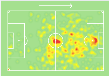 As we can see via his season heatmap from SofaScore, while he predominantly operates in the central areas, he is more than able to drop into the midfield areas, our out wide in order to get the ball at his feet.