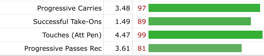Whittaker has been a standout performer in the league when it comes to carrying the ball into dangerous areas, ranking joint-fifth in the Championship with Ipswich Town’s Omari Hutchinson for carries into the penalty area (73) but also ranks amongst the best for creating chances, ranking tenth for goal-creating actions (17) and shot-creating actions (155) [FBRef].