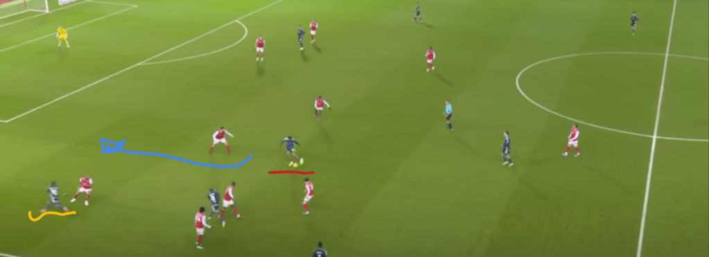 When given the opportunity to beat his man in those 1v1 scenarios, as Lille’s attacking approach demands, he fulfils those responsibilities with great regularity and consistency, whether on the left or the right.