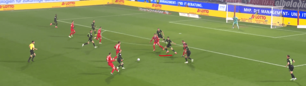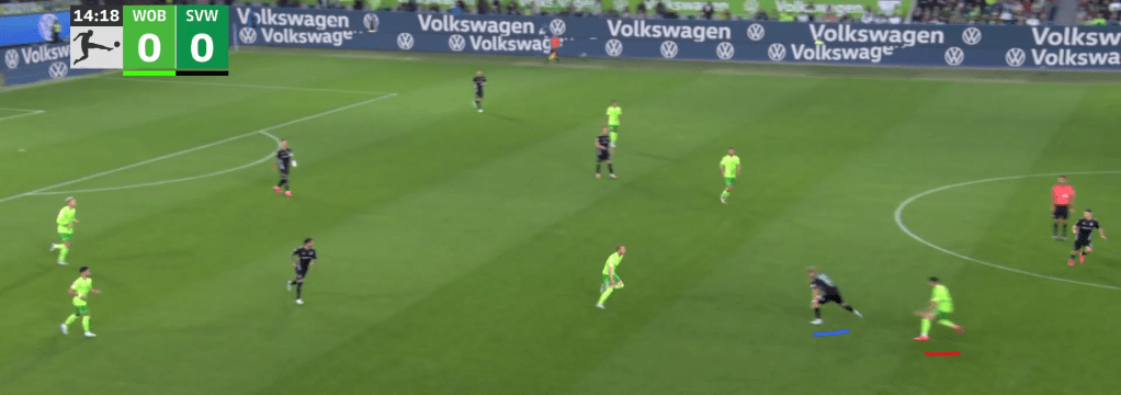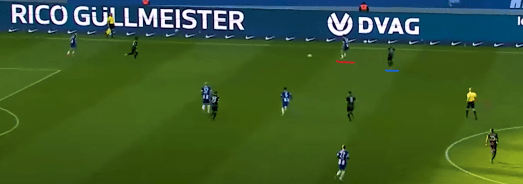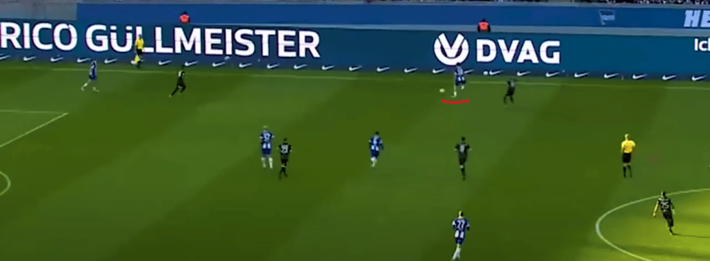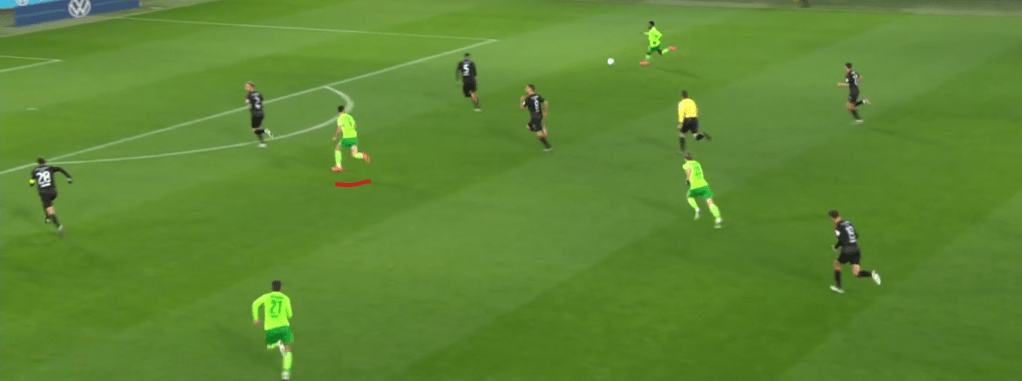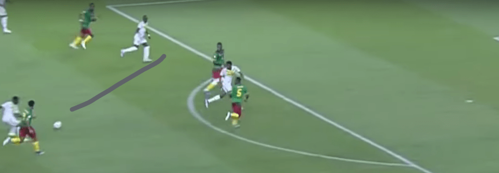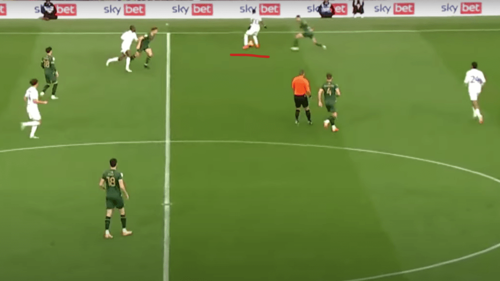 … allowing him to face up against his marker in an advantageous 1v1 scenario and have a full view of what’s ahead.