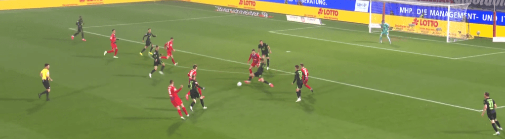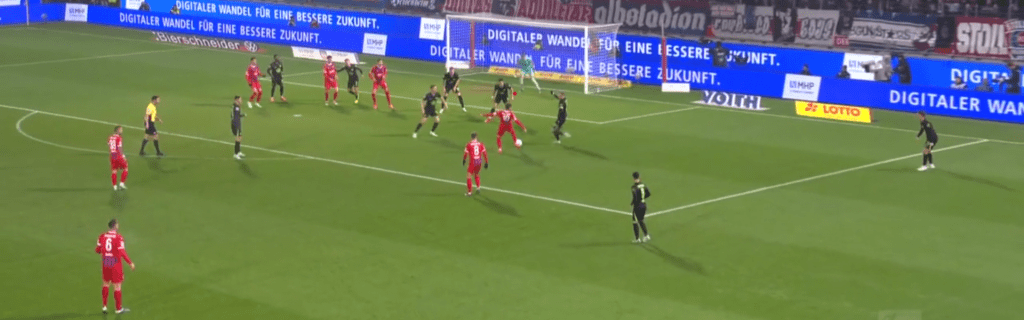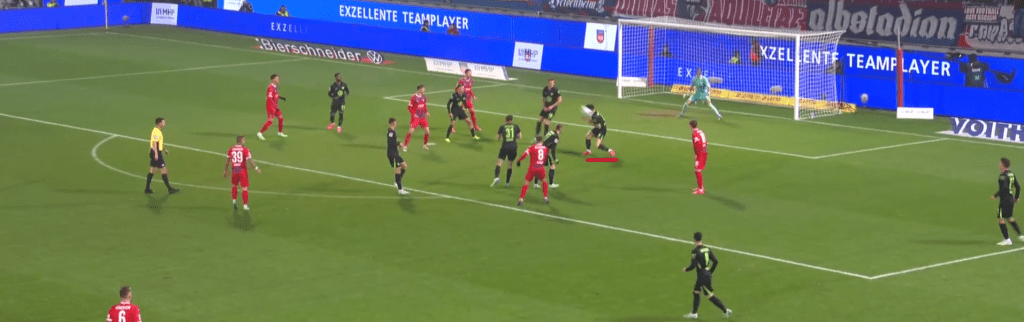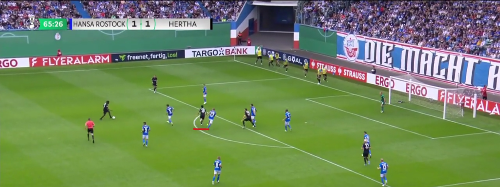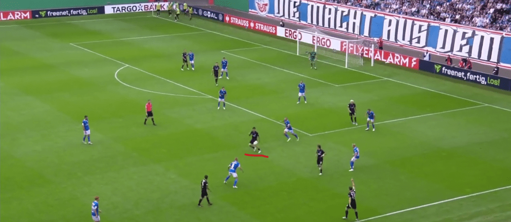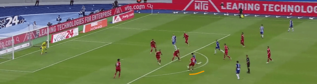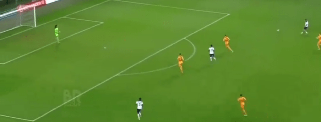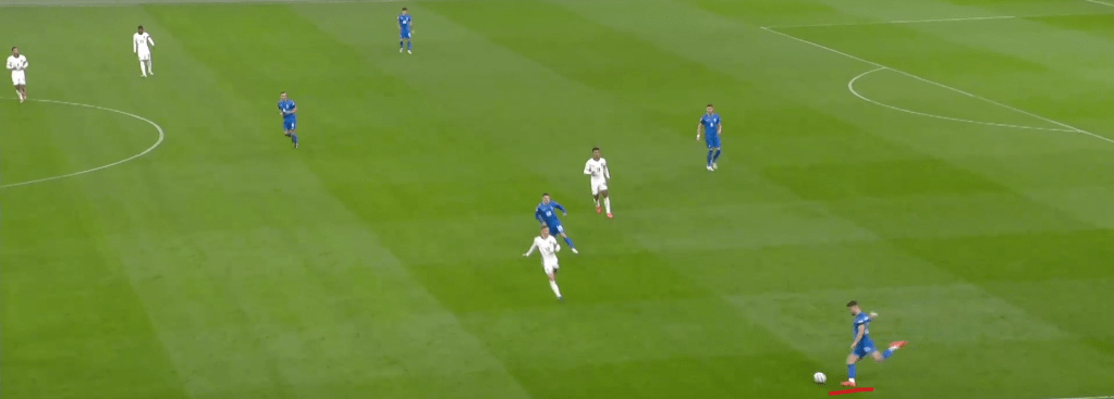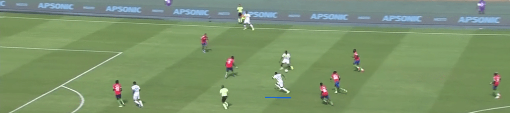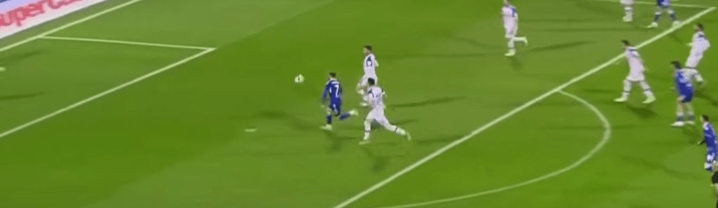 As a result of his electric 1v1 quality, he now has enough time and room to converge into the penalty area and create a goal-scoring opportunity.