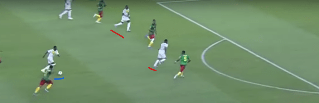 Rather than rush himself into making a decision before the midfielders join their defenders, he bides his time, takes a few more strides towards the box and allows his teammates to get into good positions for him to pass…