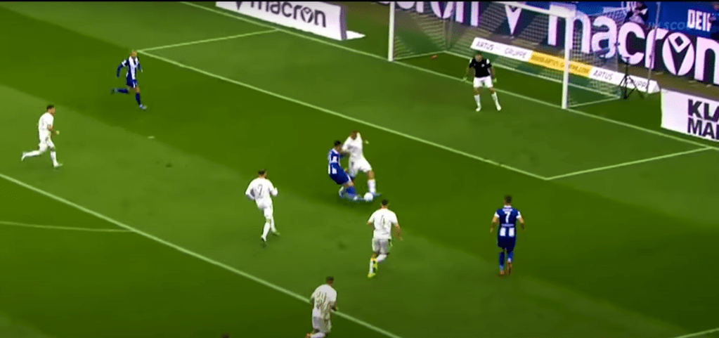 But that isn’t enough for the Spaniard. The defender recovers well…