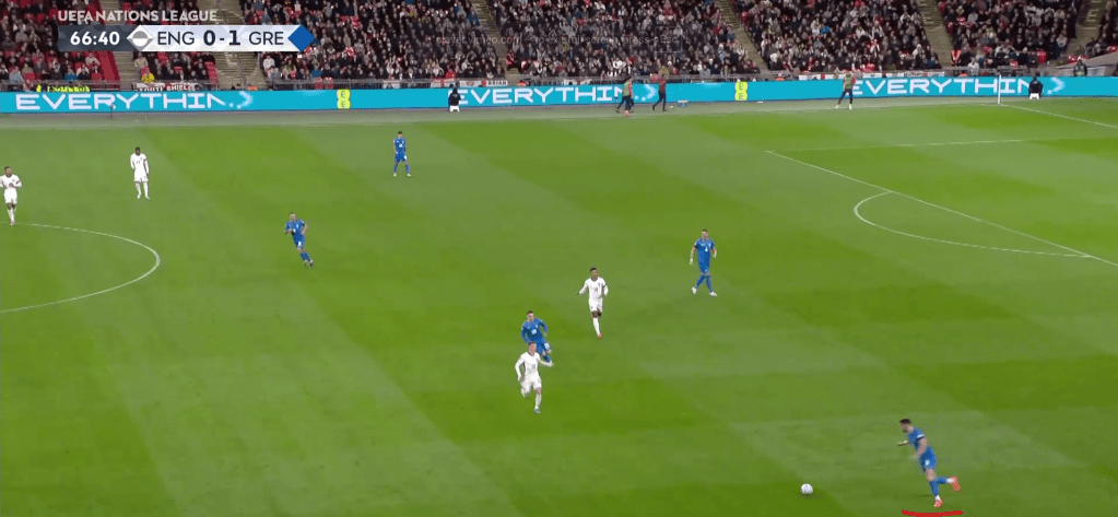 He’s gotten from the touchline to the byline and into the opponent’s penalty area to create a goal-scoring opportunity in a matter of seconds.