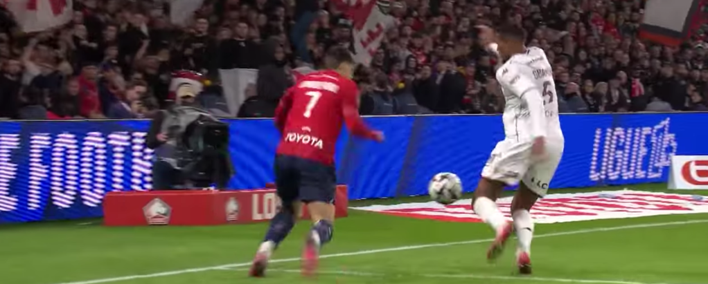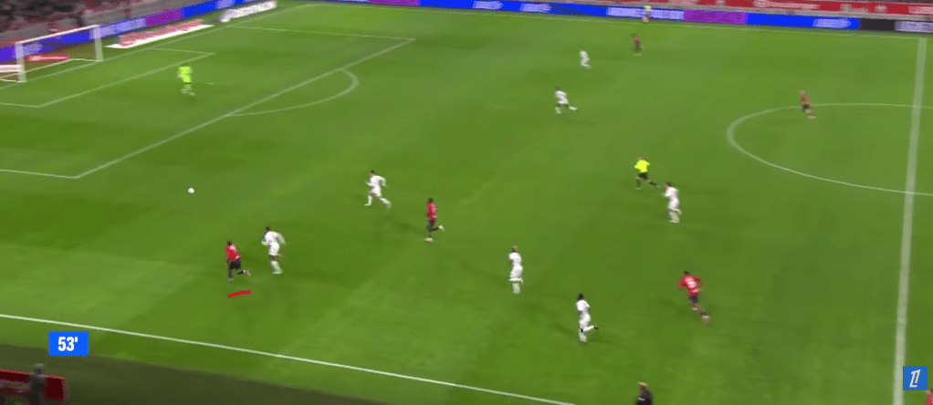 As previously noted, the Lille forward demonstrates excellent positional awareness. He knows when he needs to sit high and wide on the touchline to stretch the play, and knows when to drop into the half-spaces if he realises his full-back is the one fulfilling those duties.