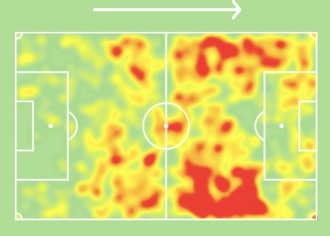 119 touches 96 passes 41 final ⅓ passes 17 passes into final ⅓ 12 passes into opp box 8 ball recoveries 6 crosses 6 chances created 5 duels won 4 interceptions 3 fouls won 2 tackles made 2 clearances