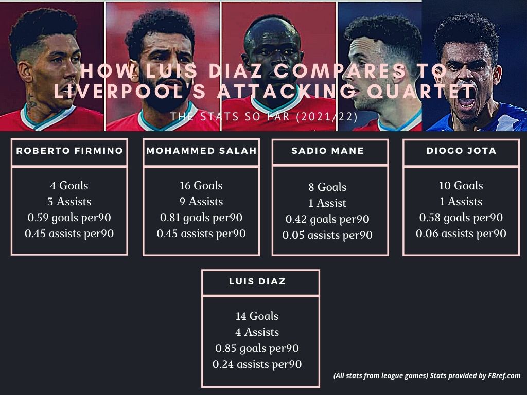 It’s evidently clear he will be lining up amongst any of the three attacking positions, most likely on the left but more importantly, Diaz will provide greater depth as he competes with Mohamed Salah, Mane, Jota, Firmino and Alex Oxlade-Chamberlain for a starting spot in the front three.